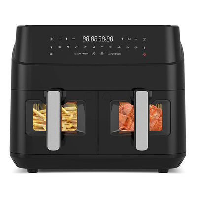 Freidora de aire de doble zona de 9L con ventana de vidrio, cesta doble digital inteligente